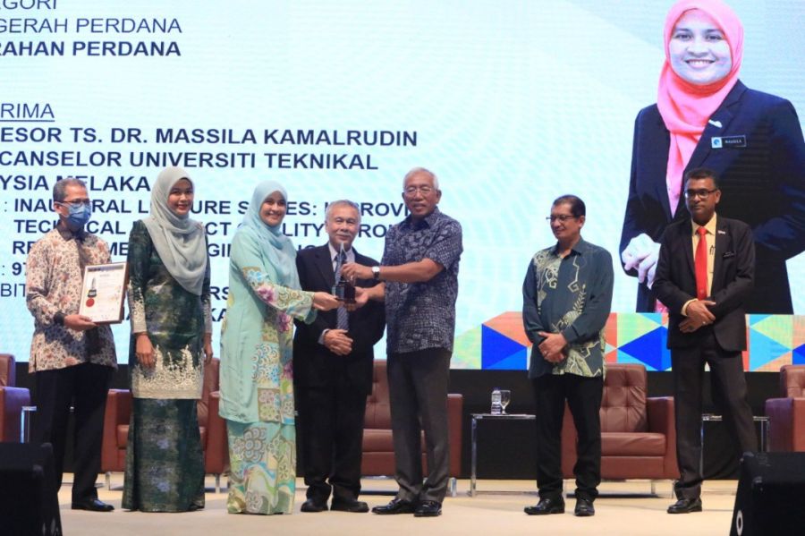 Naib Canselor Universiti Teknikal Malaysia Melaka (UTeM), Prof. Ts. Dr. Massila Kamalrudin menerima Anugerah Buku Negara 2022 menerusi karya beliau berjudul ‘Inaugural Lecture Series: Improving Technical Product Quality Through Requirements Engineering’.