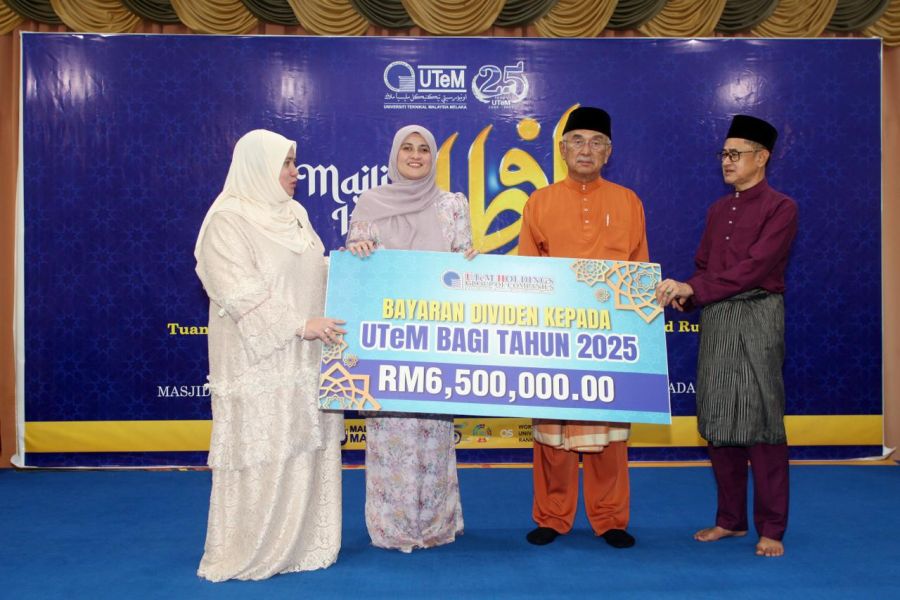Universiti Teknikal Malaysia Melaka (UTeM) telah menerima penyerahan dividen sebanyak RM 6.5 juta nilai dividen daripada UTeM Holdings Sdn Bhd (UHSB) pada Majlis Berbuka Puasa Bersama Tun Canselor di kampus induk UTeM, baru-baru ini.