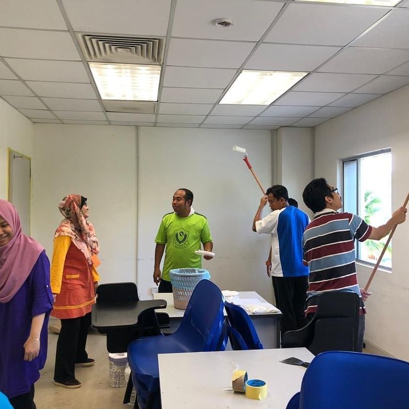 “Antara aktiviti yang dijalankan secara pengagihan kumpulan adalah seperti mengecat bilik-bilik tutorial menjadi bilik program pasca siswazah, susun atur kerusi dan meja serta perlatan.