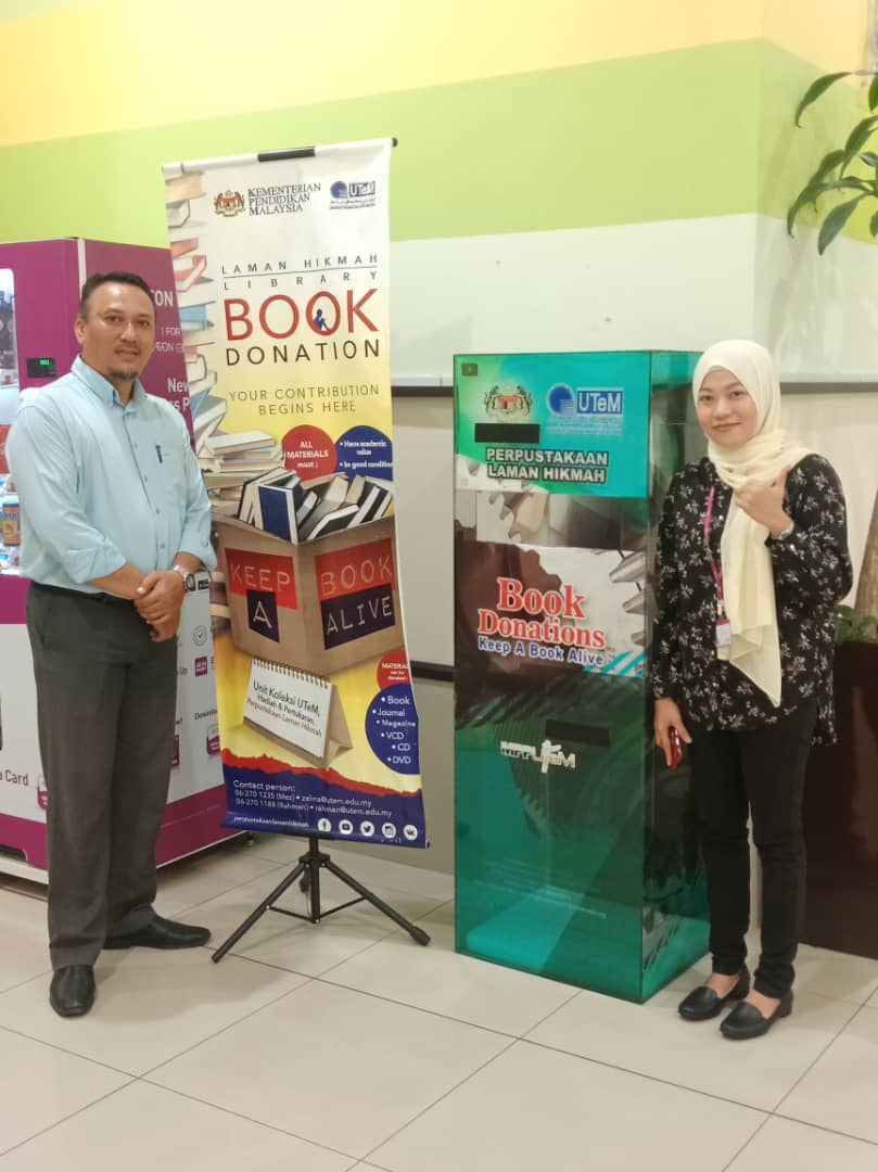 Perpustakaan Laman Hikmah (PLH), Universiti Teknikal Malaysia Melaka (UTeM) terus memperhebatkan suntikan budaya menyumbang bahan bacaan dalam kalangan komuniti setempat.