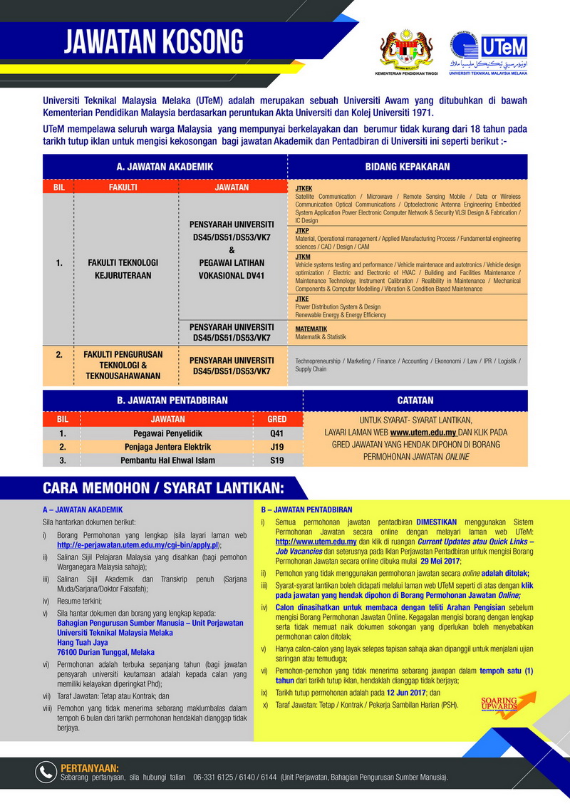JOB VACANCIES AT UNIVERSITI TEKNIKAL MALAYSIA MELAKA