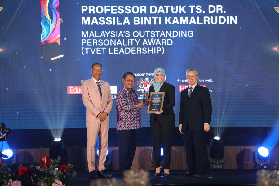 Kewibawaan dan kecemerlangan kepimpinan dinamik memacu Pendidikan dan Latihan Teknikal dan Vokasional (TVET) negara telah menobatkan Naib Canselor Universiti Teknikal Malaysia Melaka (UTeM), Profesor Datuk Ts Dr Massila Kamalrudin sebagai penerima Anugerah Personaliti Cemerlang Malaysia (Kepimpinan TVET).